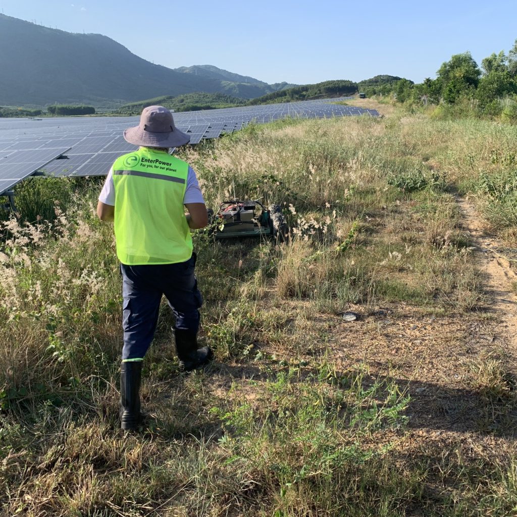 Công ty Enterpower thực hiện cắt, dọn thảm thực vật tại site Cam Lâm đúng tiến độ, chất lượng như cam kết. Có hỗ trợ công nghệ flycam để chủ đầu tư quan sát được tiến độ, chất lượng hằng ngày. Enter nghiên cứu thêm đưa Robot vào sử dụng được 85-90% để giảm chi phí nhân công.